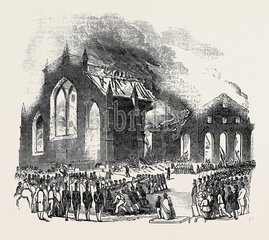 burning, greyfriars', house of God, church, edinburgh, uk, 1845 engraving, engraved image, history, illustrative technique, engravement, victorian, arts, culture, retro styled, vintage, retro, arkheia