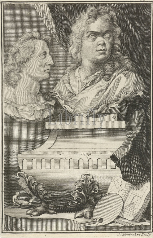 Busts, Gerard de Lairesse, Albert Flamen, Sculptured busts, Bartolet le Flamand, Jacob Houbraken, mentioned, object, Amsterdam, 1721, paper, engraving