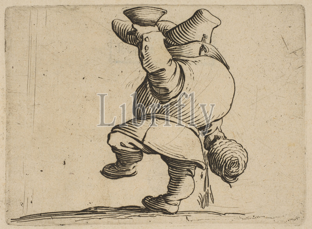 Le Buveur Vu de Dos, Drinker, Varie Figure Gobbi, suite appelée aussi Les Bossus, Les Pygmées, Nains Grotesques, Various Hunchbacked Figures, Hunchbacks, Pygmes, Grotesque Dwarfs, 1616–22, Etching, engraving, first state, two, Lieure, Sheet, 7 5/16 x 10 3/8, 18.5 26.3 cm, Prints, Jacques Callot, French, Nancy, 1592–1635