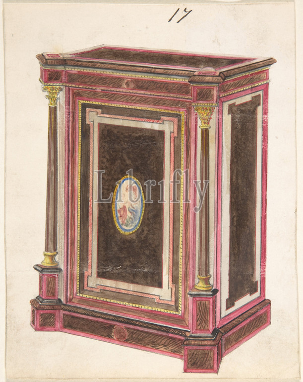 Cabinet Design, 19th century, Ink, watercolor, sheet, 5 13/16 x 4 5/8, 14.7 11.7 cm, Anonymous, British