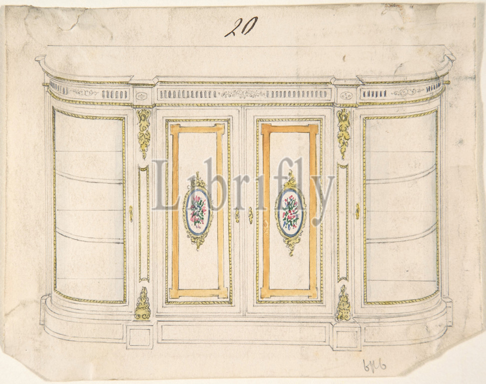 Cabinet Design, 19th century, Ink, watercolor, sheet, 4 15/16 x 6 5/16, 12.6 16.1 cm, Anonymous, British