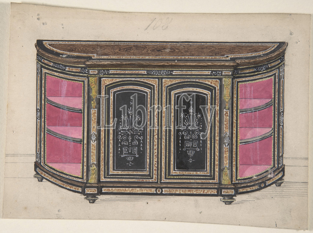 Cabinet Design, Black Doors, Red Interior, 19th century, Ink, watercolor, sheet, 5 1/16 x 7 1/2, 12.9 19 cm, Anonymous, British