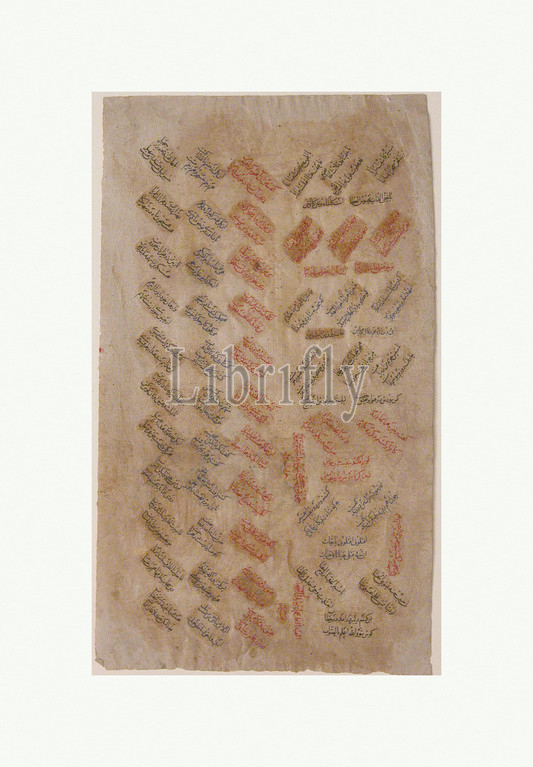 Calligraphy Folio, dated .H, 1280/ .D, 1863, Attributed, Iran, Ink, opaque watercolor, paper, Ht, 8 7/8, 22.5 cm, Codices, composition, consists, pairs, short diagonal, lines, text forming, chevron pattern, black, red, blue ink, contents include, verses, Rumi, Mathnavi, invocations, ʿAli, first Shi’ite, Imam