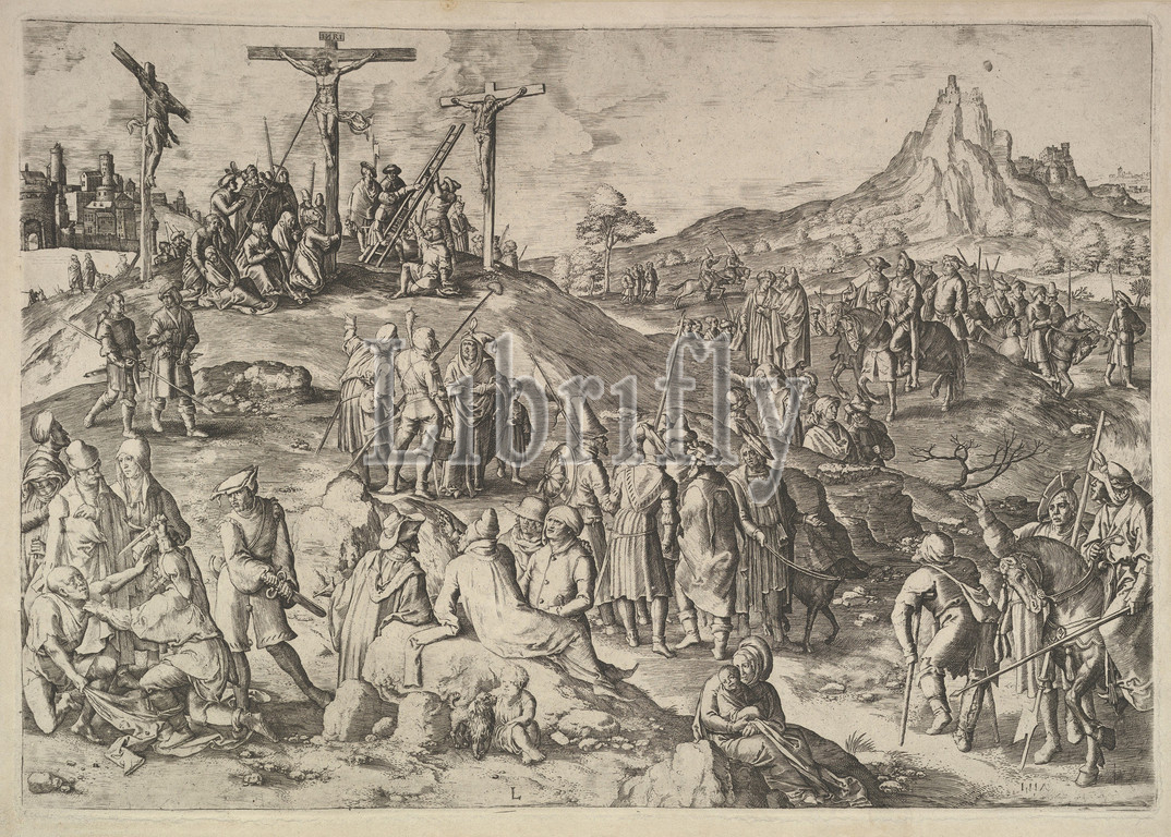 Calvary (Golgotha), 1517, Engraving; sixth state, sheet: 11 1/2 x 16 1/2 in. (29.2 x 41.9 cm), Prints, Lucas van Leyden (Netherlandish, Leiden ca. 1494–1533 Leiden)