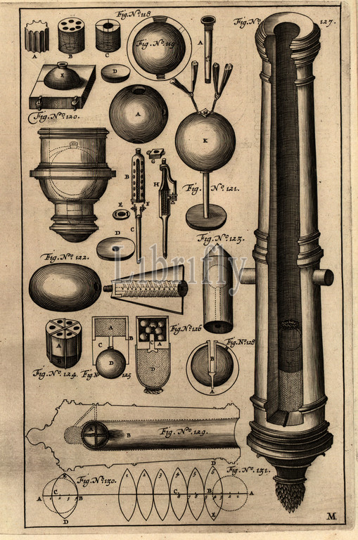 cannon, Copper engraving, Fig. 120-131, plate M, 1650, Casimiri Siemienowicz: Artis magnae artilleriae: pars prima. Amsterodami: Apud...Ianssonium, 1650