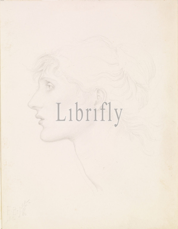 The Car of Love or Love's Wayfaring, Study of Margaret Drummond, 1880 Sir Edward Burne-Jones, Drawing, Pencil, Sketch, Pre-Raphaelite, Female, Profile