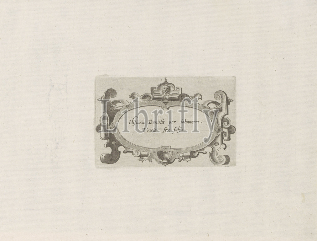 Cartouche, scrollwork History, Daniel, series title, Historia Danielis, Johannem Vriese sex folijs, object, Thesaurus sacrarum historiaru, m, veteris testame, n, ti, elega, tissimis imaginibus expressu, excelle, tissimoru, hac arte viroru, opera, now, c primu, luce, editus, Title, cartouche, scrollwork, Title print, series, prints, history, Print, part, album, strapwork, ornament, Antwerp, 1579, paper, engraving
