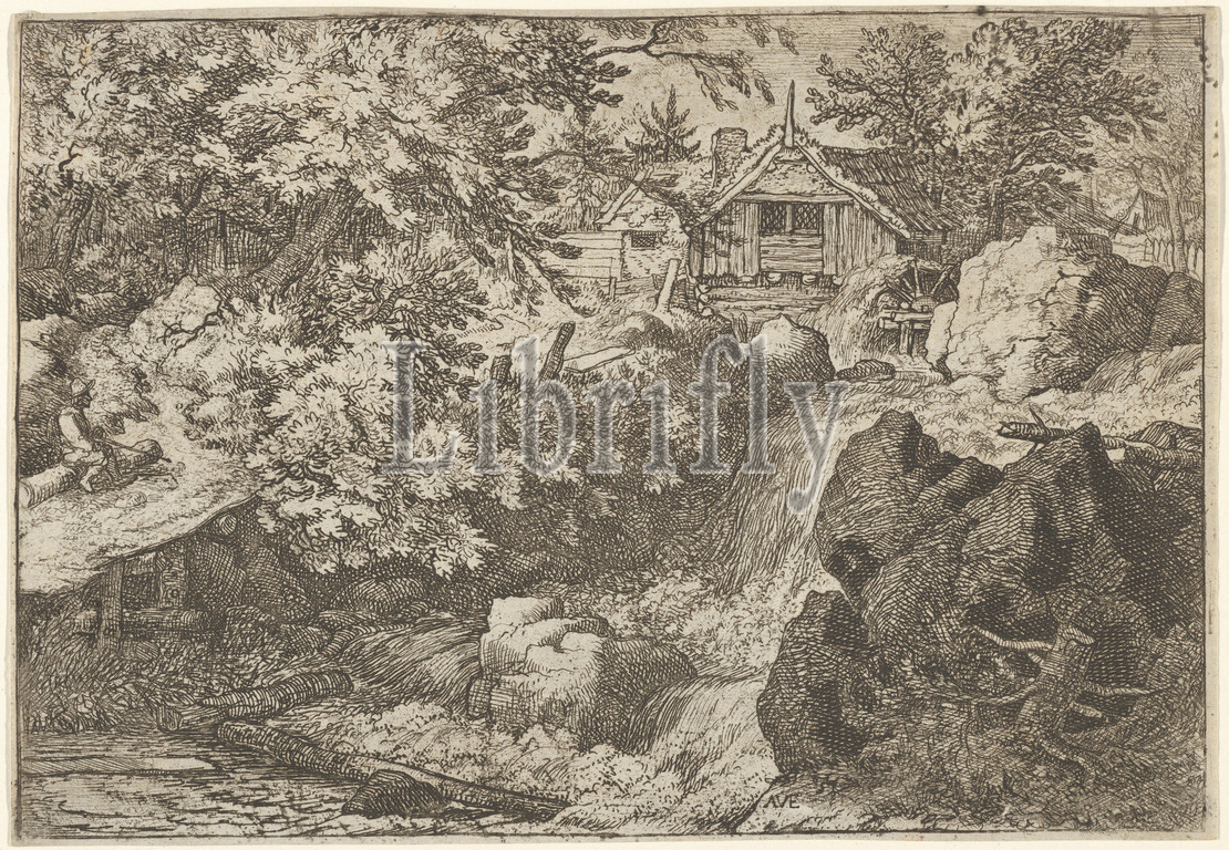 Cascade, Watermill, Engraving, fifth state, five, Sheet, 5 1/2, 7 15/16, 13.9, 20.1 cm, Prints, Allart van Everdingen, Dutch, Alkmaar, 1621–1675, Amsterdam