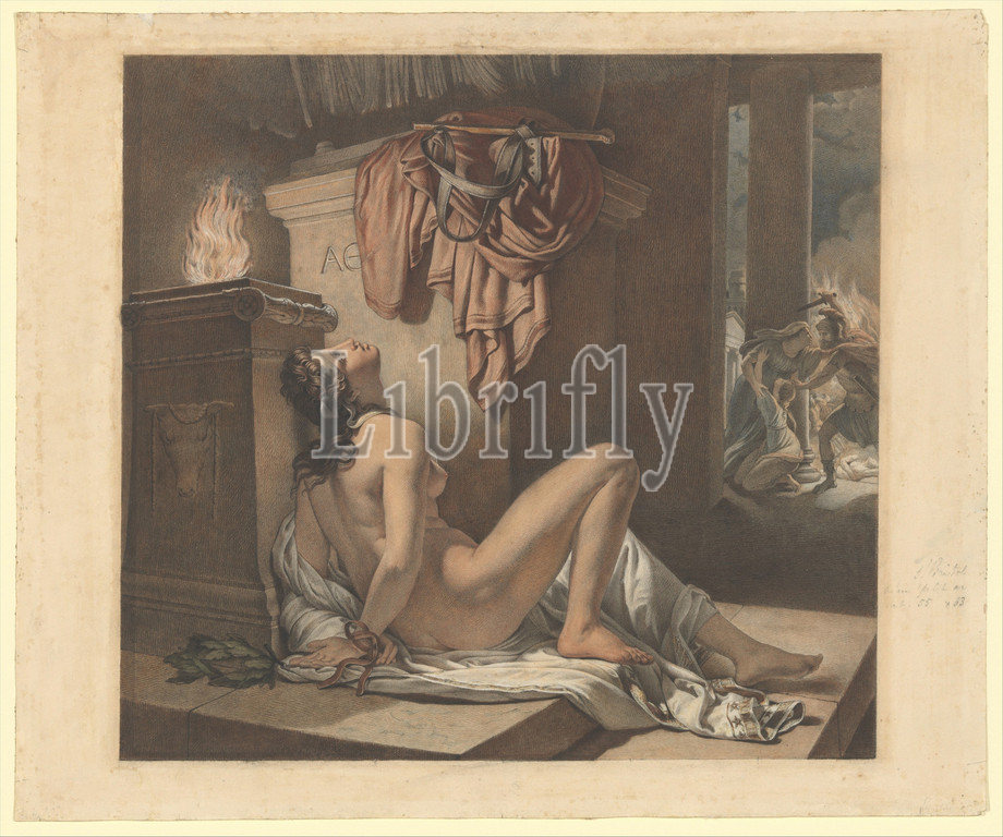 Cassandra Imploring Athena, Revenge, Ajax, 1795–1838, Black, colored chalk, watercolor, lead white paint, 16 1/4 x 19 1/2, 41.3 49.5 cm, Drawings, Jérôme Martin Langlois, French, Paris, 1779–1838
