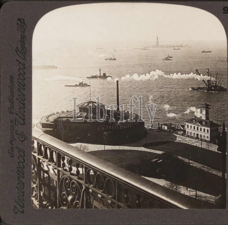 Castle Garden, the Aquarium and Liberty Statue in harbor(S.W.) New York City., 1902, New York (State), New York (N.Y.), New York, Manhattan (New York, N.Y.)