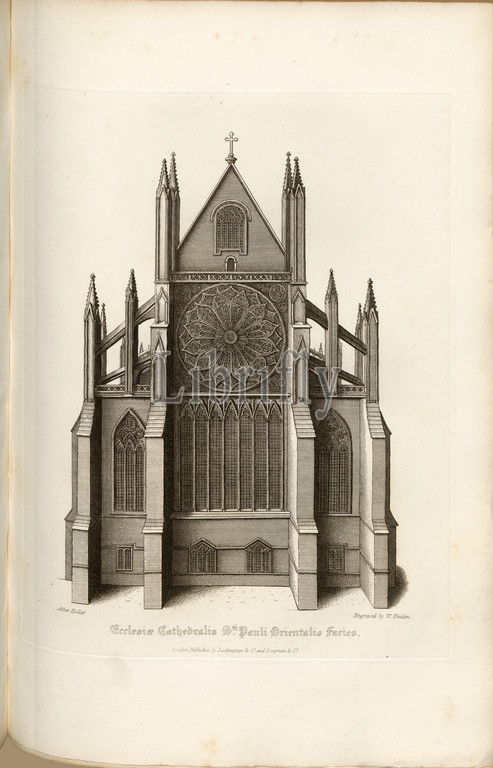 Cathedral of St. Paul eastern make, Old St Paul's Cathedral in London, signed: After Hollar; Engraved by W. Find; Published by Lackington & Co. and Longman & Co., Pl. XXXIX, after p. 108, Hollar, Wenzel (drawing); Finden, W. (engraving); Lackington & Co (publ.); Longman & Co. (publ.), William Dugdale, Henry Ellis: The history of Saint Paul's Cathedral in London, from its foundation: extracted out of original charters, records, leiger-books, and other manuscripts. London: printed for Lackington, Hughes, Harding, Mavor, and Jones; and Longman, Hurst, Rees, Orme, and Brown, 1818