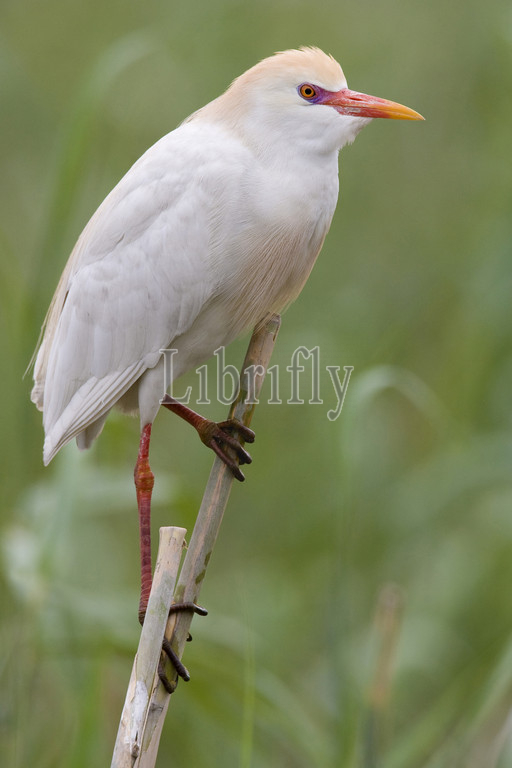 Cattle Egret adult perched in reed, Egypt