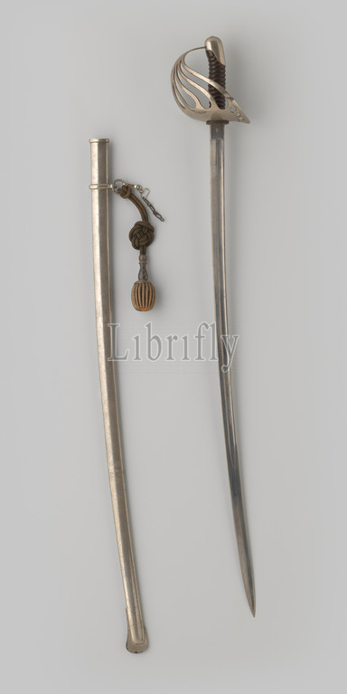 Cavalry saber replacement officer D. Schipper, Steel cavalry saber of reserve officer D. Schipper. Steel sheath with a loose ring on which hangs a yellow sable brush on a brown-yellow cord. The blade has a blood channel and is engraved with motifs and the name of the manufacturer. The hilt has a closed baffle plate with six brackets. On the ricasso quality marks. The handle is ribbed and leather, Aceh, Dirk Schipper, anonymous, Breda (possibly), 1800 - 1899, kling, korf, schede, greepkap, ringen, sleepplaat, koord, greep, engraving, l 101.5 cm l 97 cm l 87 cm l 80 cm × w 2.5 cm l 15 cm l 2.3 cm