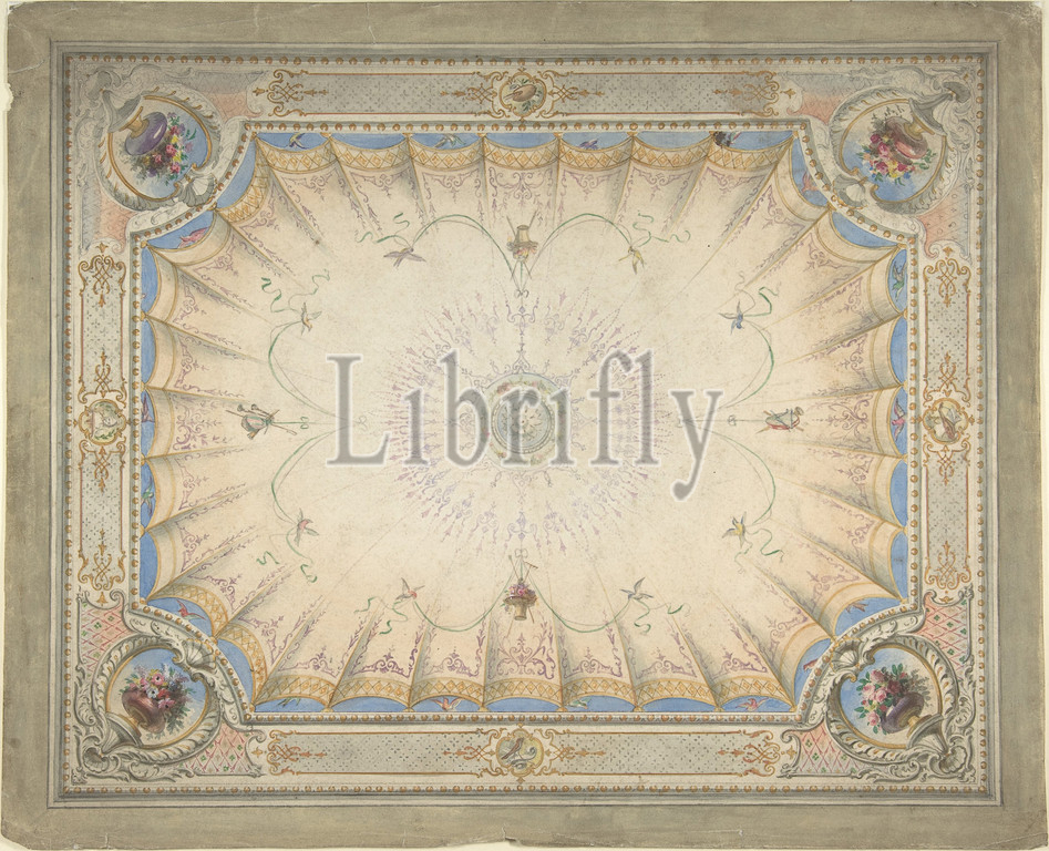Ceiling Design, Boudoir, Ardgowan, ca, 1868, Watercolor, graphite, sheet, 13 1/2 x 16 1/2, 34.3 41.9 cm, Attributed to J. S. Pearse, British, active, 1854–68