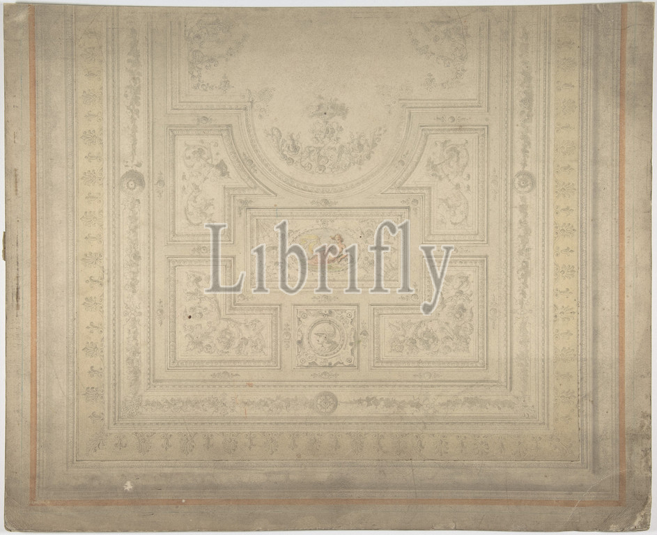 Ceiling Design with Nymph on Dolphin, 19th century, Ink and watercolor, Anonymous, British, 19th century