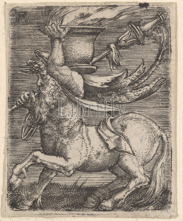Centaur Carrying a Vase with Fire, Engraving, Sheet: 1 9/16 × 1 1/4 in. (4 × 3.2 cm), Prints, Albrecht Altdorfer (German, Regensburg ca. 1480–1538 Regensburg)