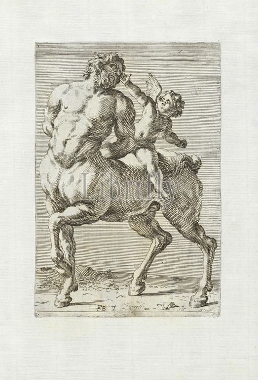 Centaurus amoris captiuus, Segmenta nobilium signorum e statuarū, Perrier, François, 1590?-1656?, Engraving, 1638, 3/4 front view of Eros and centaur. The statue is reversed in the print.