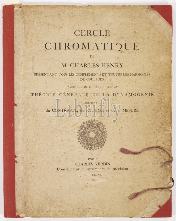 Cercle Chromatique, Charles Henry, Librarian, French, 1859-1926, 1888-1889, letterpress, steel engraving, 23-1/2 x 16-3/4, sheet, Signed, numbered, ink, collophon page, u.c., 161 Charles Henry