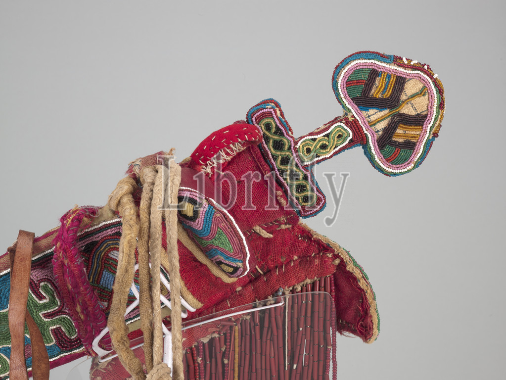 ceremonial sword, sheath, Owo people, late 19th century, early 20th century, glass beads, cloth, ivory, iron, approximately. L, 18, sword, approximately L, 26, hanging elements, African Art