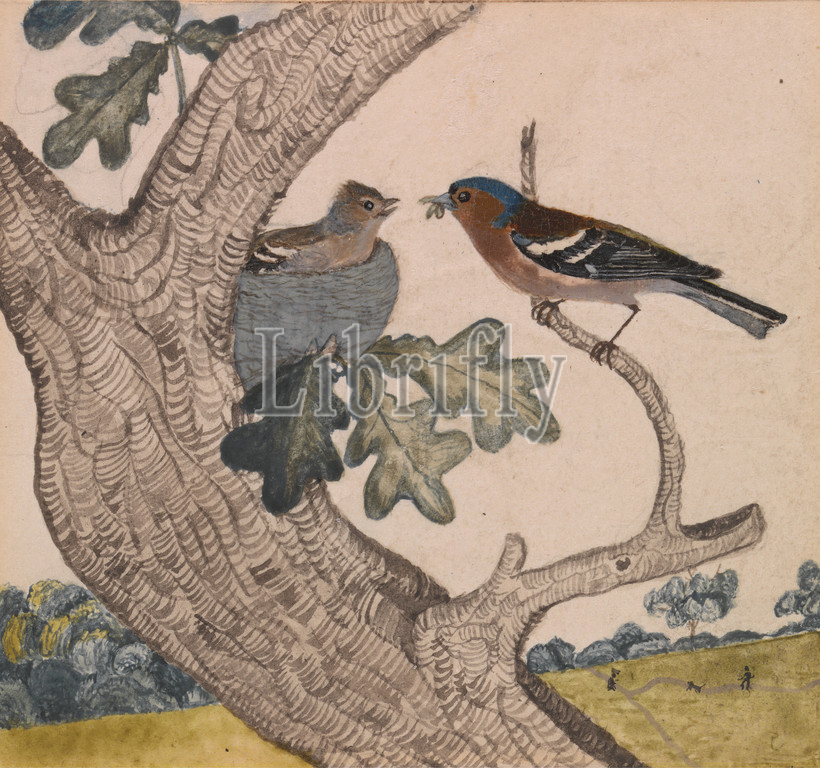 Chaffinch, Possibly Joseph Wolf, 1820–1899, German, ca. 1840, Watercolor, with pen in brown ink, over graphite on medium, slightly textured, beige, wove paper, Sheet: 4 3/4 × 4 1/16 inches (12.1 × 10.3 cm) and Image: 2 5/8 × 2 13/16 inches (6.7 × 7.1 cm), animal art