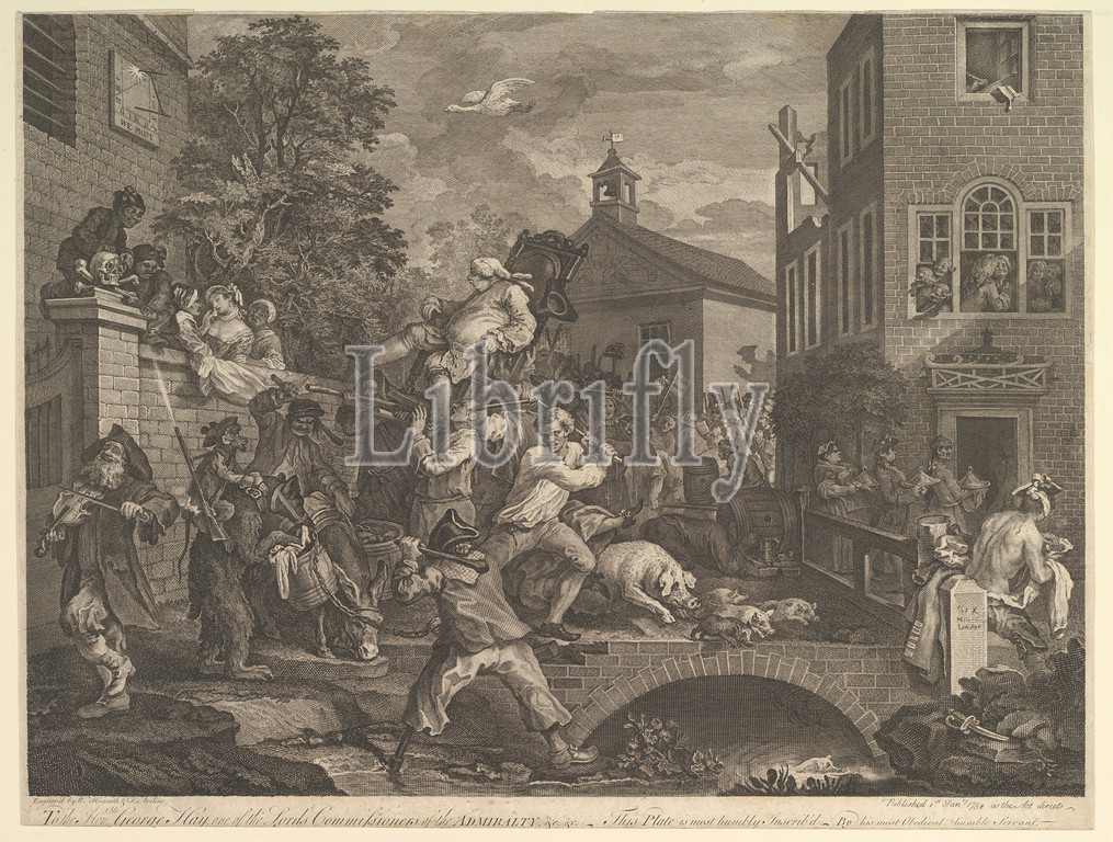 Chairing, Members, Plate IV, Four Prints, Election, January 1, 1758, Etching, engraving, third state, three, sheet, 16 9/16 x 22 1/16, 42 56 cm, Prints