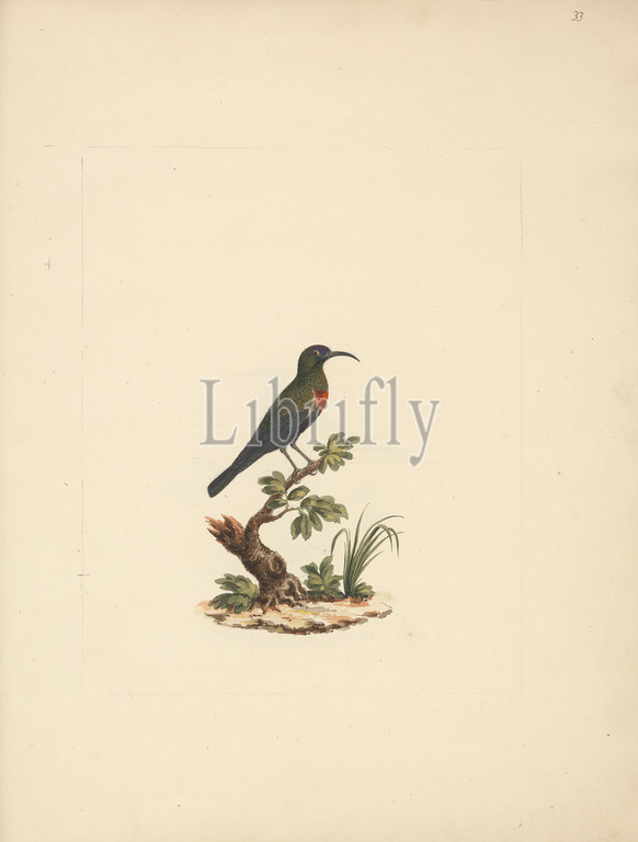 Chalcomitra senegalensis, Scarlet Chested Sunbird, Luigi Balugani, 1737–1770, Italian, Watercolor, gouache, graphite, medium, slightly textured, cream laid paper, Binding, 16 inches, 40.6 cm, Sheet, animal art