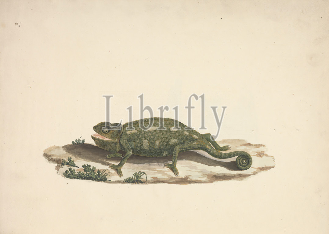 Unidentified Chameleon, Luigi Balugani, 1737–1770, Italian, Watercolor, gouache, graphite, medium, slightly textured, cream laid paper, Binding, 16 inches, 40.6 cm, Sheet, animal art