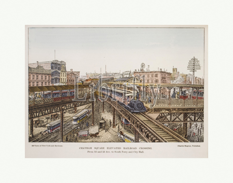 Chatham Square Elevated Railroad Crossing, 1850–1900, Wood engraving, hand colored, 11 x 8 1/2 in. (27.9 x 21.6 cm), Prints