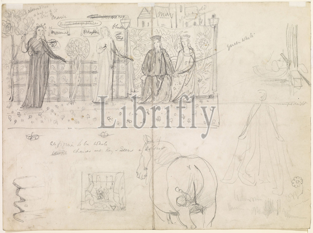 Chaucer, Legend, Good Women, Sketch, 1863 Artist, Sir Edward Burne-Jones, Proposed design, needlework hanging, John Ruskin, home, Art Movement, Pre-Raphaelite, Drawing, Works, Paper, Literature, Geoffrey Chaucer