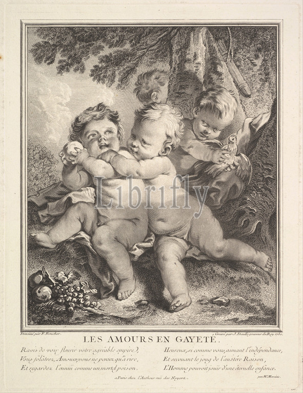 The Cheerful Cupids, 1750, Etching and engraving, Plate: 13 1/2 × 10 1/4 in. (34.3 × 26.1 cm), Prints, Jean Daullé (French, Abbeville 1703–1763 Paris), After François Boucher (French, Paris 1703–1770 Paris)