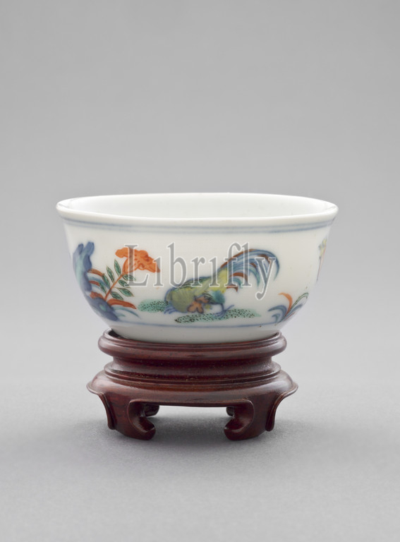 chicken cup, wooden stand, Kangxi, Qing dynasty, period, 1662-1722, glaze, 2-1/8, diam, Asian Art