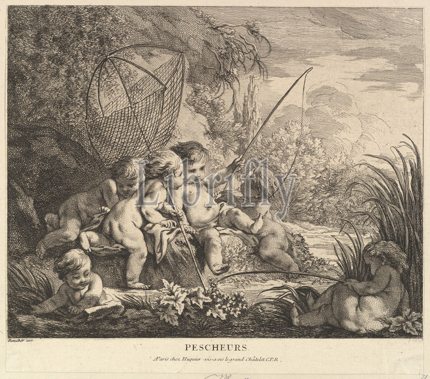 Children Fishing, ca. 1738, Etching and Engraving, Sheet: 9 x 10 1/4 in. (22.9 x 26 cm), Prints, Pierre Alexandre Aveline (French, Paris 1702–1760 Paris), After François Boucher (French, Paris 1703–1770 Paris)