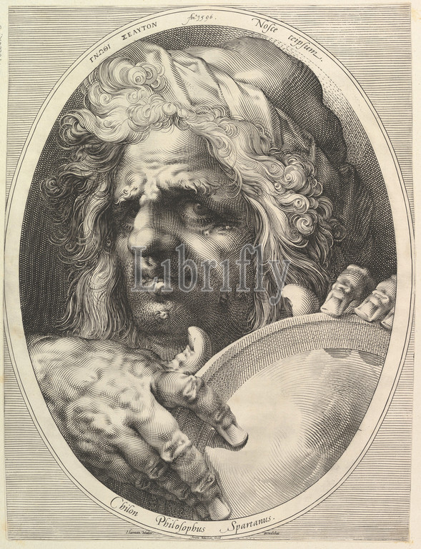 Chilon, Legislator & Philosopher, Sparta, ca, 1615, Engraving, second state, three, 18 7/8, 14 3/16, 47.9, 36 cm, Prints, Jan Muller, Netherlandish, Amsterdam, 1571–1628