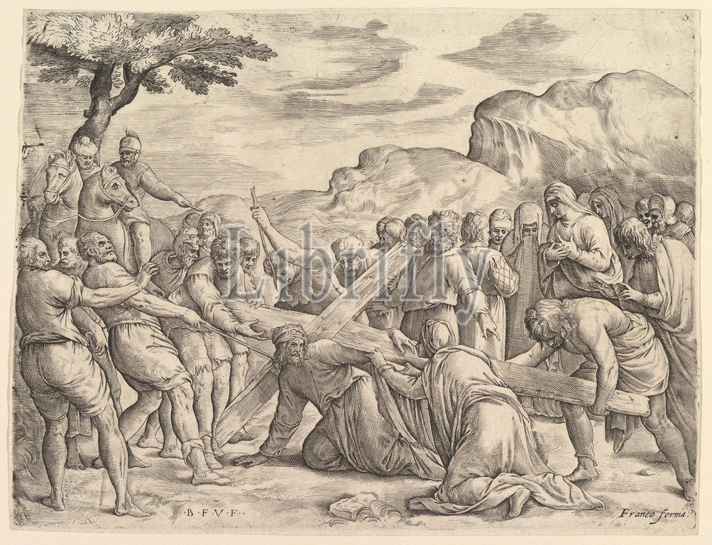 Christ Carrying, Cross, ca, 1552, Etching, engraving, state ii, sheet, 9 15/16 x 13 1/8, 25.2 33.3 cm, trimmed, platemark, Prints, Battista Franco, Italian, Venice ca., 1510–1561, Venice