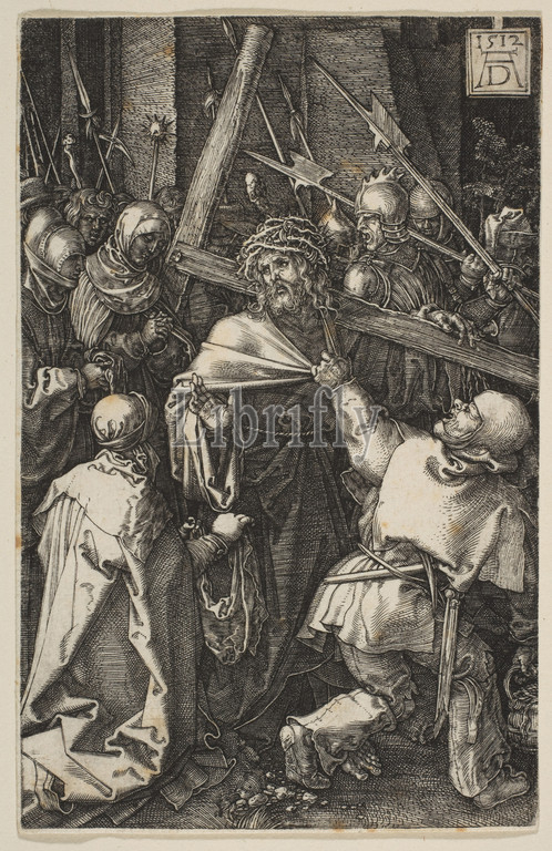 Christ Carrying, Cross, Passion, 1512, Engraving, Sheet, 4 9/16, 2 15/16, 11.6, 7.4 cm, Prints, Albrecht Dürer, German, Nuremberg, 1471–1528