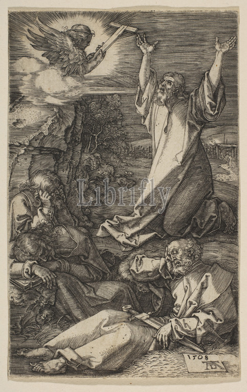 Christ, Mount, Olives, Passion, 1508, Engraving, Sheet, 4 1/2, 2 13/16, 11.4, 7.2 cm, Prints, Albrecht Dürer, German, Nuremberg, 1471–1528