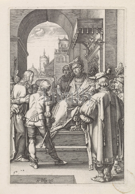 Christ, Pilate, Passion, series title, sits, throne, Netherlands, 1596, 1667, paper, engraving