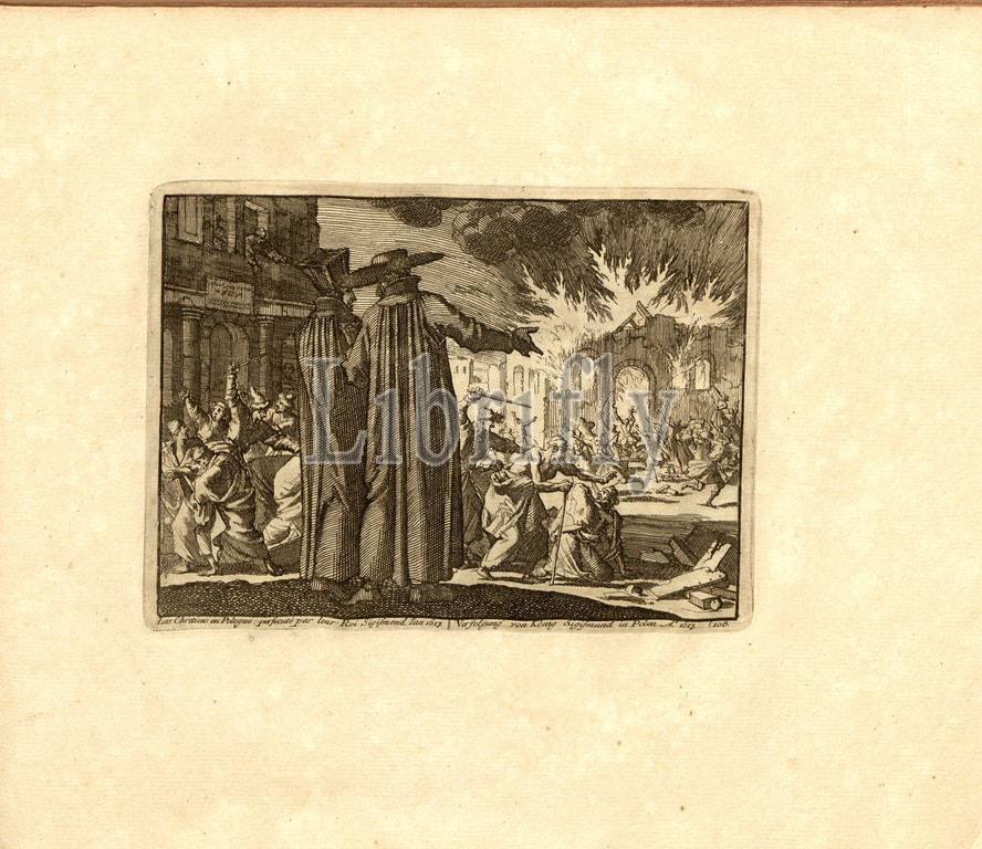 Christians in Poland persecuted by their king Sigismund 1617, Parallel title: Persecution of King Sigismund in Poland A nn o 1617, copperplate engraving, 108.), p. 225, Luyken, Jan (inv. et fec.), Jan Luyken: Théâtre des martyrs: depuis la mort de J.Christ jusqu'à present: représenté en très belles tailles-douces = Schau-Bühne der Martyrer; gezeichnet und in Kuppfer gestochen. Leyde: chez Pierre Van der Aa, [1711]