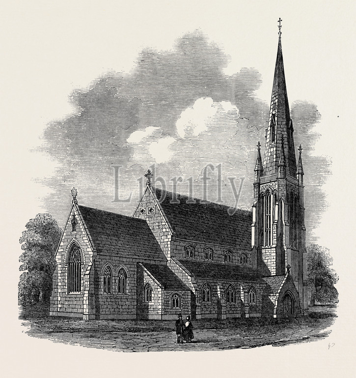 house of God, church, st. stephen, shepherd's bush, consecrated, thursday, uk, 1850 engraving, engraved image, history, illustrative technique, engravement, victorian, arts, culture, retro styled, vintage, retro, arkheia