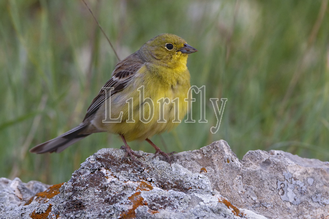Cinereous Bunting perched on rock, Emberiza cineracea