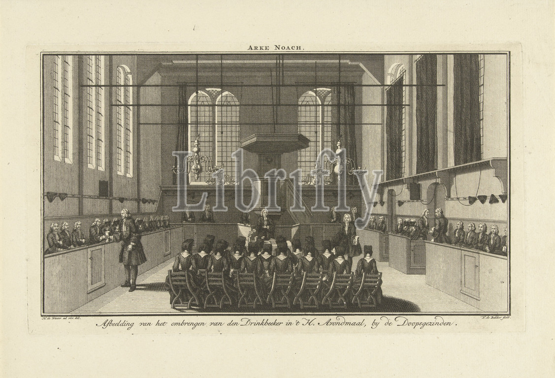 Circulation, drinking cup, Holy Supper, Baptist Church De Arke Noach, Amsterdam Arke Noach, Image, murder, Drinking cup, Baptists, title, object, exhortation, Oude Friezen, Prinsengracht, Amsterdam, Holy Communion, Protestant service, interior, church, Protestant Churches, denominations, MENNONITES, Frans de Bakker, mentioned, 1743, paper, engraving