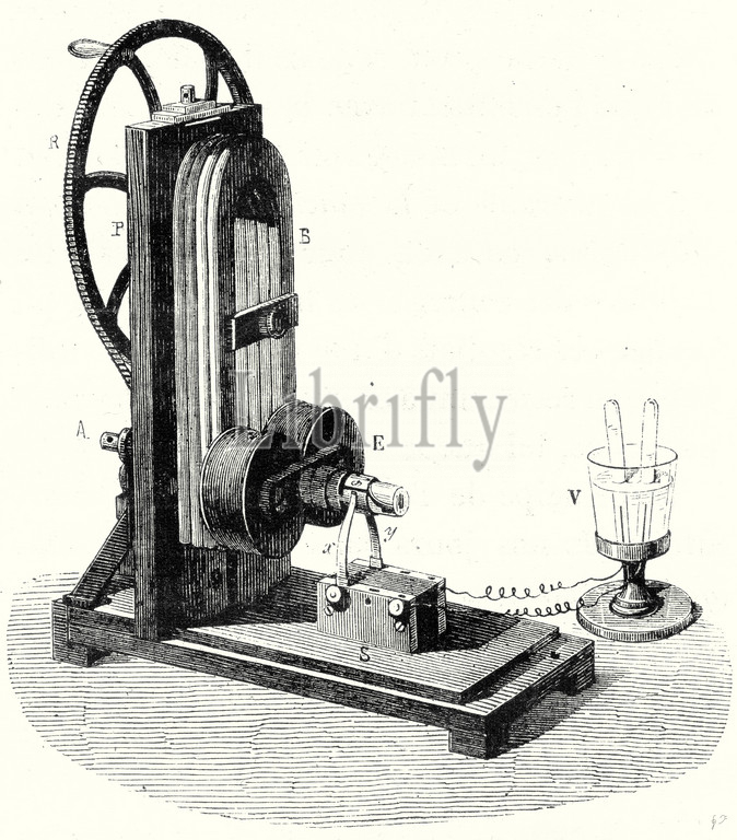 clarke's machine, clarke, machine, science, invention, 19th century, techlogy, 19th century engraving, new invention, invention ideas, famous inventions, nineteenth century, the 19th century, 19th century history, in 19th century, vintage, old print, 19th century, victorian, retro, quint, lox, engraving