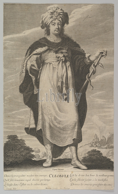 Cléobule, ca, 1639–40, Engraving, figure, Couvay, etching, background, Bosse, sheet, 14 1/16 x 8 5/16, 35.7 21.1 cm, Prints, Jean Couvay, French, Arles ca., 1605–1663, Paris, Abraham Bosse, Tours, 1602/1604–1676, After Claude Vignon, 1593–1670