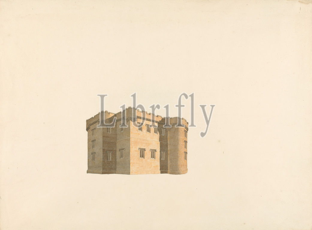 Cluny Castle, Aberdeenshire, Scotland, Perspective, William Wilkins, 1778–1839, British, ca, 1816, Pen, black ink, watercolor, slightly textured, moderately thick, cream wove paper, Sheet, architectural subject