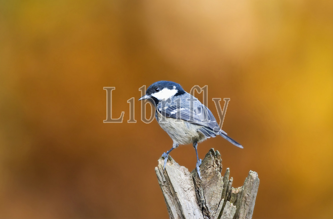 Coal Tit perched on branck, Periparus ater