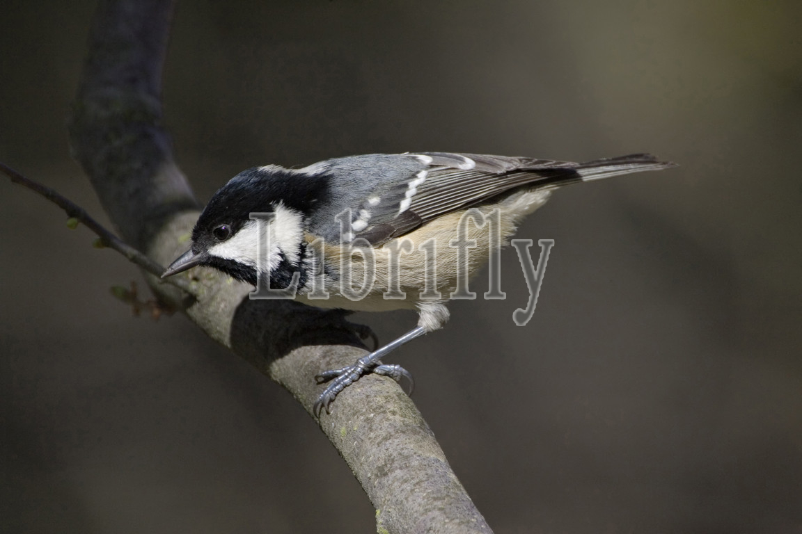 Coal Tit perched in a tree, Periparus ater