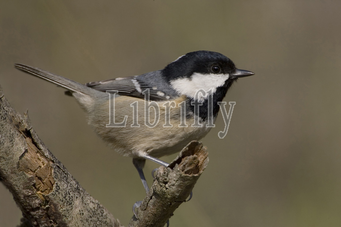 Coal Tit perched in a tree, Periparus ater