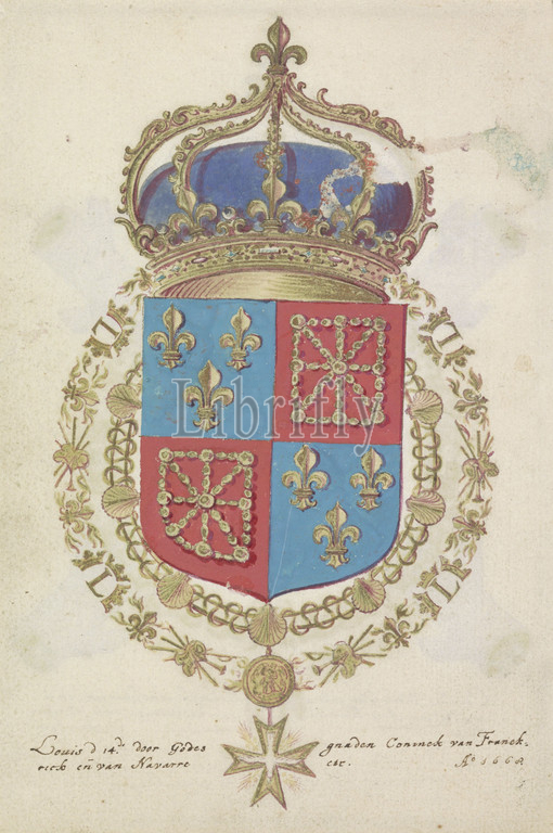 Coat, arms, Louis XIV, King, France, 1668, paper, deck paint, watercolor, paint, gouache, brush