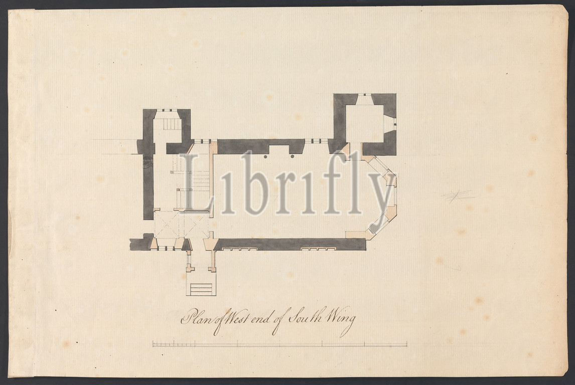 Cobham Hall, Kent, Plan, West, South Wing, James Wyatt, 1746–1813, British, ca, 1790, Graphite, pen, black ink, watercolor, moderately thick, slightly textured, cream laid paper, Sheet, architectural subject, bay windows, plans, drawings, stairs, windows, Cobham, Cobham Hall, England, Kent, United Kingdom