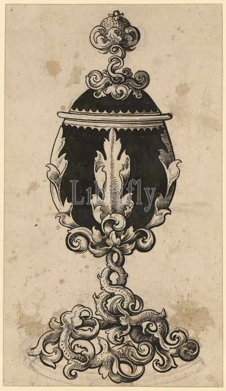 Cocoon Lidded Cup, c. 1514, black paintbrush, over black pen drawing, sheet: 30.1 x 17.2 cm, unsigned, Urs Graf, Solothurn um 1485 – 1527/28